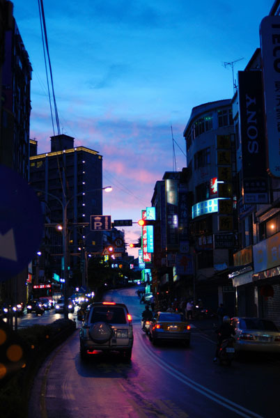 之後整理照片入神猛然轉頭看到窗外一片粉紫色,連忙從防潮箱扯出相機忙亂的裝上鏡頭外加闖了兩個紅綠燈,